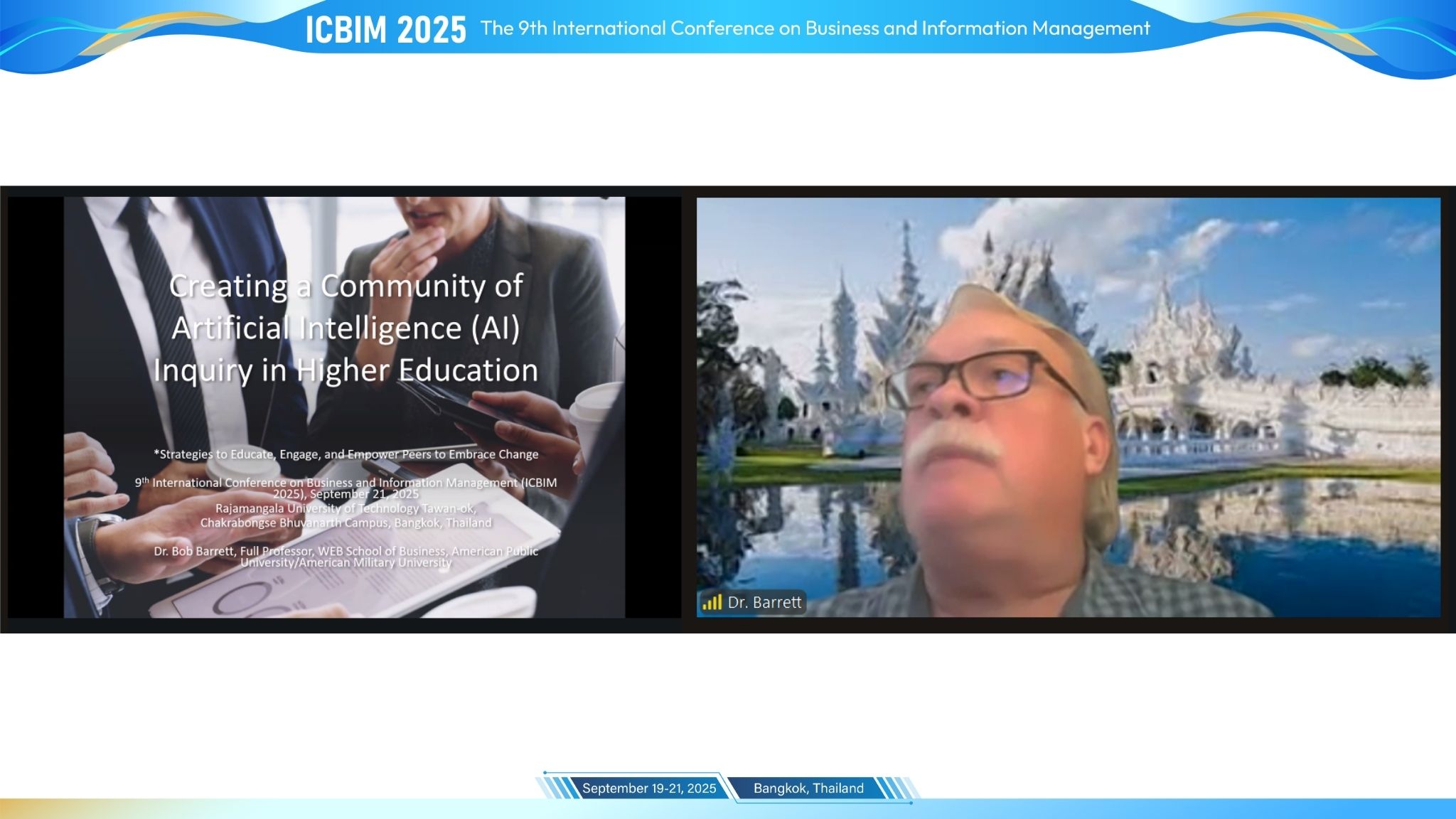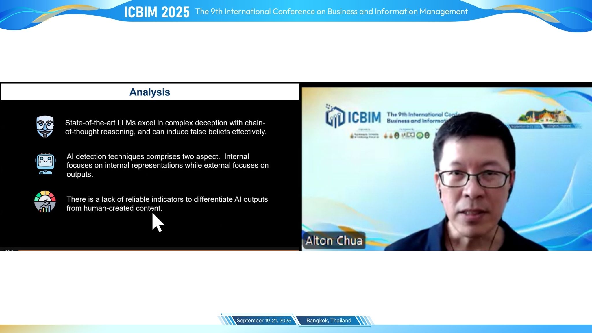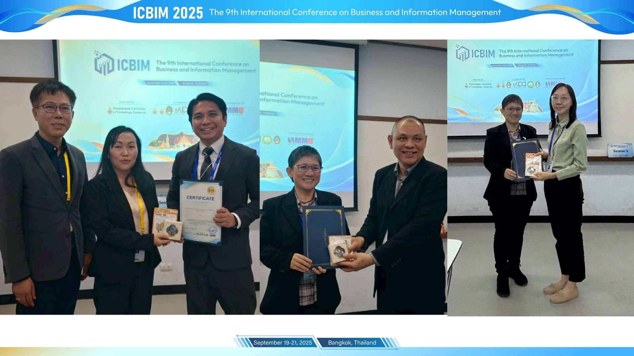 The 9th International Conference on Business and Information Management (ICBIM 2025) hold in Bangkok, Thailand from 19-21 September 2025. The conference was organized by Rajamangala University of Technology Tawan-ok, Thailand, co-organized by Rajamangala University of Technology Suvarnabhumi, Thailand, Chiang Rai Rajabhat University, Thailand, International Auditors for Digital and Data Management Association (IADD), Thailand, Rajamangala University of Technology Thanyaburi, Thailand, Maejo University, Thailand, Valaya Alongkorn Rajabhat University, Thailand and technical supported by Multimedia University, Malaysia