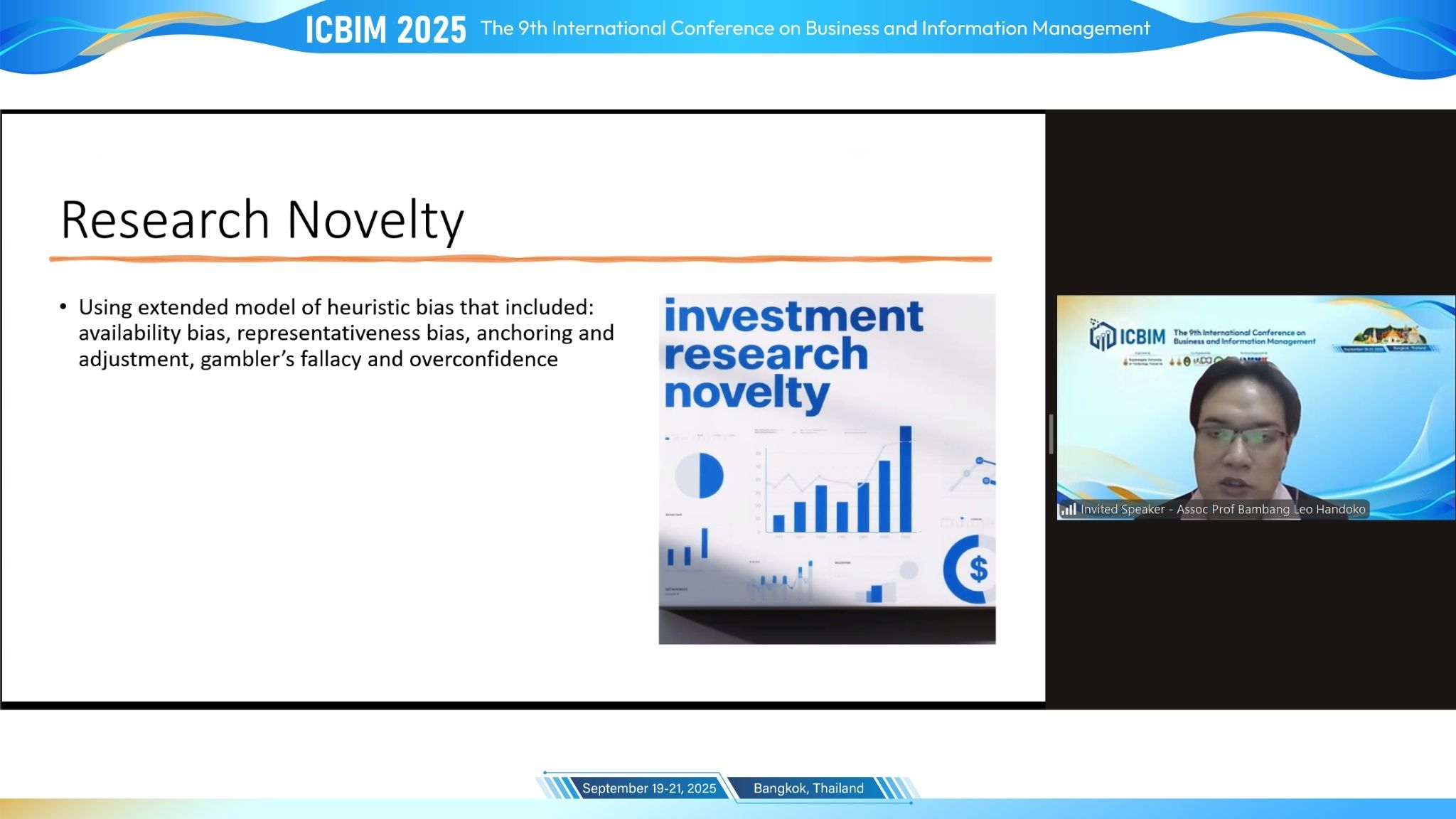 Assoc. Prof. Bambang Leo Handoko’s online invited talk delved into the factors shaping cryptocurrency investment decisions. By expanding the heuristic bias model, he analyzed how cognitive biases influence investors' judgment and decision-making processes in the volatile cryptocurrency market, and provided insights into how investors and financial institutions can mitigate the negative impacts of these biases.